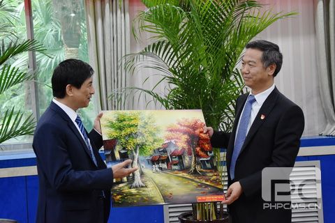 蔡钊利在致辞中首先代表校(院)委会和全体教职工对代表团来访表示热烈欢迎,并简要介绍了校(院)发展历史、职能定位、教学培训和对外交流合作相关情况。他指出,中越两国人民友好交往源远流长,在争取国家独立和民族解放的斗争中,结下了“同志加兄弟”的特殊情谊和深厚的革命友谊。进入新时期,在推进改革革新以及富有各自特色的社会主义建设事业中,双方相互学习、帮助、借鉴,携手并进,共同探索符合本国国情的社会主义发展道路,推动两国关系得到了长足发展,创造出了各自发展的奇迹。他希望双方以此为契机,进一步加强往来、增进友谊,加大深层次交流与合作,为促进中越双方在经济、文化、社会等领域的交流与发展做出新的贡献。蔡钊利还从坚持和加强中国共产党的领导,坚持中国特色社会主义道路,坚持用党的创新理论武装全党、坚持党管干部、党管人才,保持党同人民群众血肉联系及全面从严治党等方面实践经验做了深入阐述。
